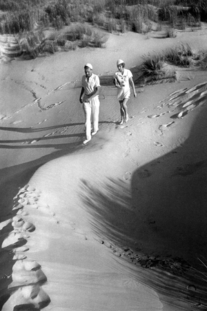 - Langeoog, Nordsee, 2 Personen auf Dünen-Wanderung, 1935