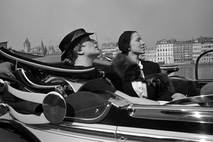 - Frankfurt, Horchwagen vor dem Stadtpanorama, 1936