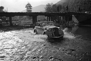 - Opel-Fahrt nach Griechenland, 1936, Opel-Olympia bei der Flussdurchquerung