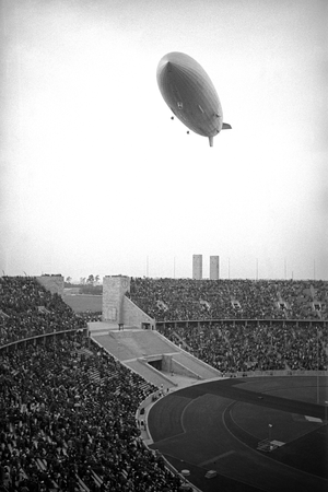 - Olympiade Berlin, 1936, Zeppelin LZ 129 Hindenburg über dem Olympia-Stadion