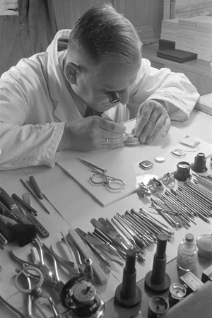 - Schramberg, Junghans Uhrenfabrik, Uhrmacher bei der Arbeit, 1936