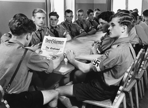 - Frankfurt, Lehrlingsheim Röderbergweg, NSV, Junge Pimpfe lesen die Zeitung "Der Stürmer", 1937