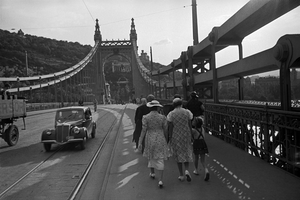 - Budapest, Verkehr auf der Freiheitsbrücke (die wahrscheinlich schönste Donaubrücke), 1937