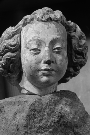 Mittelalter Skulpturen und Sammlungsstücke aus dem Schnütgen Museum, Engelskopf, Frankreich, 15. Jahrhundert, Stein, gefasst, Aufnahmen von Alfred Tritschler aus dem Jahr 1948