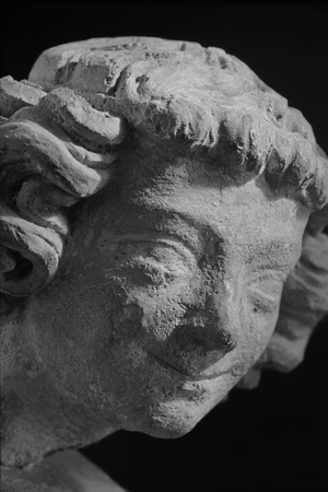 - Mittelalter Skulpturen und Sammlungsstücke aus dem Schnütgen Museum, Engelskopf aus dem Chor des Kölner Doms, Köln, um 1300, Stein mit Fassungsresten, Aufnahmen von Alfred Tritschler aus dem Jahr 1948