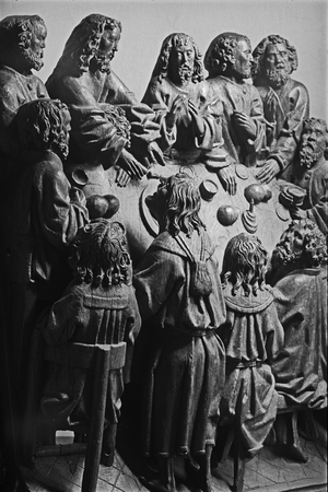 - Mittelalter Skulpturen und Sammlungsstücke aus dem Schnütgen Museum, Letztes Abendmahl, Nördliche Niederlande, um 1500-20, Eiche, Aufnahmen von Alfred Tritschler aus dem Jahr 1948