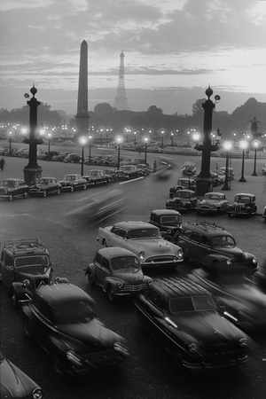 - Paris, Verkehr am Place de la Concorde, im Hintergrund der Eiffelturm, 1954,