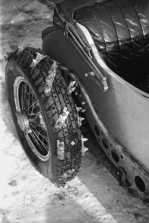3. ADAC-Eisrennen auf dem Titisee, 1933, Detailaufnahmen vom Autoreifen