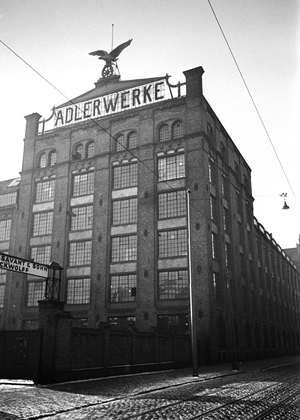 - Frankfurt, Adler-Werke, Werksansicht mit Eingangstor, 1934, Leica-Serien-Nr.: 842a-020,