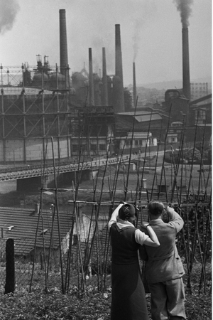 - Saarland, Hütten- und Stahlwerke, Aus der Serie: "Saarfahrt 1934", Blick aus dem Schrebergarten auf die Völklinger Hütte