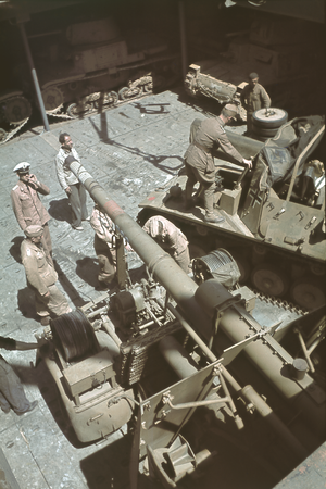 - 2. Weltkrieg, Afrikafeldzug, Ausladen von Kriegsmaterial aus dem Schiff,