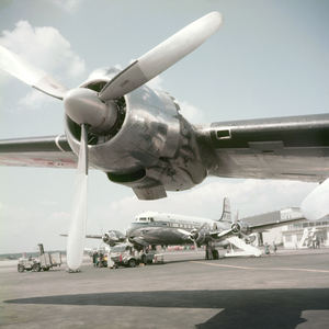 - Farb-Dia, Frankfurt Flughafen 60er Jahren, Flugzeuge beim Beladen und Überprüfung der Fahrwerke,