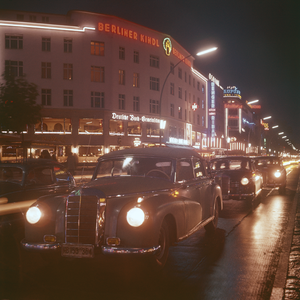 - Farb-Dia, Berlin, Straßenverkehr auf dem Kurfürstendamm bei Nacht mit Mercedes Benz 300, 1958