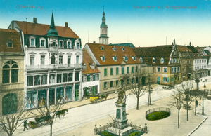 - Offenburg, Historische Postkarte, Marktplatz mit Kriegerdenkmal, 1900