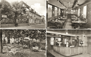 - Offenburg, Historische Postkarte, Gasthaus Krone in der Vorstadt mit Gartenwirtschaft, 1940