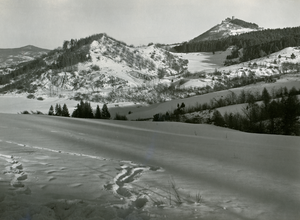 - Nürburgring, Platten-Negativ im Krieg zerstört, Vintage-Print im Archiv vorhanden. Frühe Aufnahme von Paul Wolff, 1925, Winter am Nürburgring, rechts hinten die Nürburg, Die Aufnahme ist im Buch nicht vorhanden,