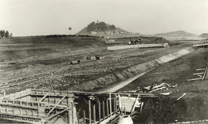 - Nürburgring, Platten-Negativ im Krieg zerstört, Vintage-Print im Archiv vorhanden. Frühe Aufnahme von Paul Wolff, 1925. Zu Füßen der Nürburg entsteht der Start- Zielbereich. Die Fahrbahn Richtung Nordkehre ist bereits planiert.