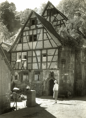 Schönau im Odenwald ist bekannt für sein ehemaliges Kloster. Das Kloster wurde 1142 als Zisterzienserkloster vom Kloster Eberbach aus gegründet. Das Glasplatten-Negativ im Format 18 x 24 cm hat die Archiv-Nr.: 3733 und wurde von Paul Wolff im Auftrag der "Deutschen Reichsbahn-Gesellschaft, Reichsbahndirektion Karlsruhe, aufgenommen.