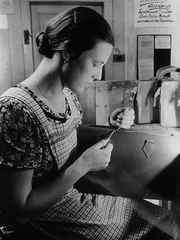 | ARCHIUM_PROPERTY_content_general | Offenbach/M. Fa. Krumm AG, Lederwerke, Arbeiterin bei der Taschenfertigung, 1934 |