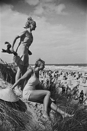 | ARCHIUM_PROPERTY_content_general | Norderney, 1935, zwei Frauen auf der Düne mit Blick über den Strand auf die Nordsee, |