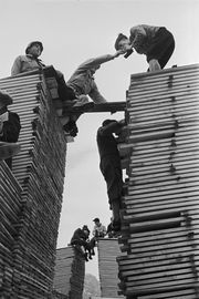 | ARCHIUM_PROPERTY_content_general | Winter-Olympiade, Garmisch Partenkirchen, 1936, Helfer auf den Holzstapeln, |
