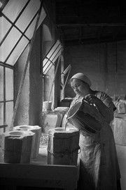 | ARCHIUM_PROPERTY_content_general | Naumburger Töpferei, Schlesienfahrt, Frau beim Eingießen der flüssigen Tonmasse in die Gipsformen, 1936 |