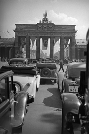 | ARCHIUM_PROPERTY_content_general | Berlin, Verkehr vor dem Brandenburger Tor in Richtung Osten "Unter den Linden", während der Olympiade 1936, |