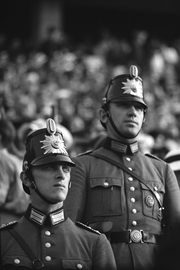 | ARCHIUM_PROPERTY_content_general | Olympiade Berlin, 1936, zwei Polizisten in Uniform im Stadion, |