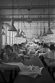 | ARCHIUM_PROPERTY_content_general | Bierbaum-Proenen, Köln, 1937, Textilunternehmen, Herstellung von Kleidungsstücken, Blick in den Nähsal, Frauenarbeit, |