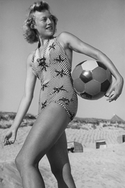 | ARCHIUM_PROPERTY_content_general | Benger-Ribana, Bademoden, 1938, Modell mit Ball am Strand von Amrum, |