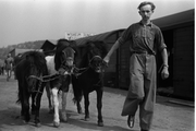 | ARCHIUM_PROPERTY_content_general | Zirkus Barum, 1952, Tierpfleger führt die Ponys von der Rampe |
