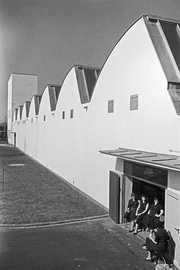 | ARCHIUM_PROPERTY_content_general | Trier, Deutsche Bobinet, Textilindustrie, neue Werkshallen mit Shed-Dach, Arbeiterinnen machen Pause, 1958 |