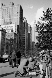 | ARCHIUM_PROPERTY_content_general | New York, 1932, Schuhputzer auf der Straße, im Hintergrund das Empire State Building |