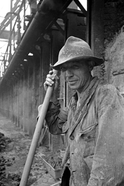 | ARCHIUM_PROPERTY_content_general | Völklingen, Röchling-Hütte, Stahlarbeiter mit Hut und Schaufel, 1934 |