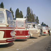 | ARCHIUM_PROPERTY_content_general | Farb-Dia, Verkehr in den 60er Jahren, Frankfurt, Busparkplatz an der Messe |