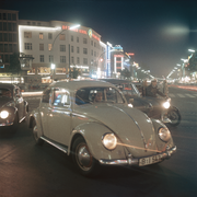 | ARCHIUM_PROPERTY_content_general | Farb-Dia, Berlin, Straßenverkehr auf dem Kurfürstendamm bei Nacht mit VW-Käfer, 1958 |