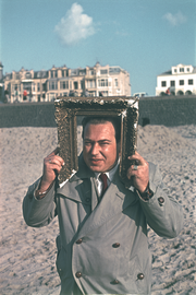 | ARCHIUM_PROPERTY_content_general | Robert Sommer mit einem Strandfund am Nordseestrand, Osterfahrt nach Holland, 1957 |
