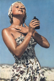 | ARCHIUM_PROPERTY_content_general | Blonde Frau am Strand cremt sich mit Sonnenschutz ein, Farbbild, Leica-Aufnahme mit Agfacolor-Film, Negativ nicht mehr vorhanden, 1939 |